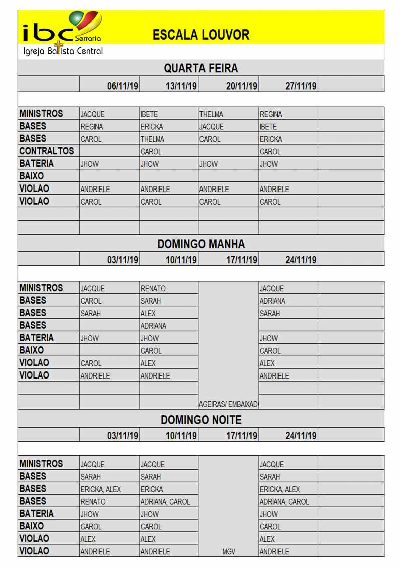 Escalas ministeriais Novembro
